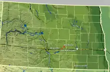 La défaite de Little Crow lors de la guerre des Sioux de 1862 cause une dispersion généralisée des Santees (ou Dakotas orientaux). Sur les 6 300 Santees, 2 000 sont faits prisonniers. Environ 700 des Lower Sioux des groupes Mdewakanton (en) et Wahpekute restent libres. La plupart des 4 000 Upper Sioux des groupes de Sisseton et de Wahpeton, qui ont été des participants réticents de la guerre, restent aussi libres. Quelques réfugiés de cette guerre fuient vers le Canada, mais plus de 4 000 se rassemblent durant l'été 1863 sur un grand campement dans l'actuel comté de Kidder au Dakota du Nord. Ils sont rejoints dans le camp par un nombre inconnu, mais probablement quantifiable, de leurs proches Teton, Yankton, et Yanktonai[2].
