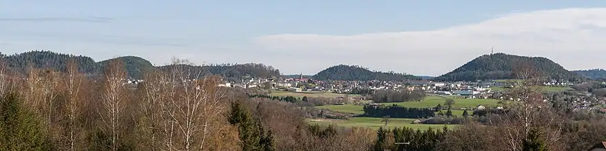 Vue sur Bruyères de la perspective des troupes américaines qui arrivent du sud-ouest.