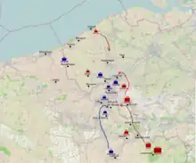 Sur ordre de Pichegru, Souham, qui s'est replié sur Aalbeke en fin de journée après la bataille de Willems, retourne sa division vers Courtrai[12]. Le 11 mai, Souham envoie les brigades Daendels et Winter renforcer Vandamme à Courtrai[13]. Pendant ce temps, Souham ordonne aux brigades Macdonald et Malbrancq de traverser la Lys à Menin, et de se diriger vers le nord-est contre Clerfayt[12].