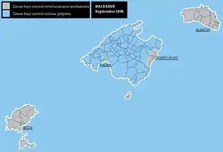 La prise précoce de Majorque par les nationalistes leur procure des bases d'opérations, notamment aériennes [13], avec les avions italiens de la Aviazione Legionaria[14] et allemands de la Légion Condor. Ces appuis aériens seront précieux pour les nationalistes durant toute la guerre civile, en particulier pour la prise de Barcelone le et pour celle de la Catalogne, le .
