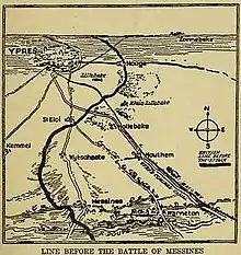 La ligne de front autour d'Ypres a peu changé depuis la fin de la deuxième bataille d'Ypres des 22 avril au . Depuis cette bataille, les Britanniques tiennent la ville, tandis que les Allemands tiennent la crête de Messines-Wytschaete au sud, les crêtes inférieures à l'est et le terrain plat vers le nord. Le front d'Ypres forme un saillant dans les lignes allemandes, mais il est négligé par les observateurs d'artillerie allemands. Les Britanniques ont peu de possibilité d'observation des lignes arrières allemandes et des vallées à l'est des crêtes. Les crêtes du saillant d'Ypres sont situées au nord et à l'est de Messines. La plus haute crête est à 80 mètres (264 pieds) au-dessus niveau de la mer passe « Clapham Junction » à l'extrémité ouest du plateau de Gheluvelt haut de 65 mètres (213 pieds) à 4 kilomètres (2,5 miles) d'Ypres. Une autre crête, haute de 50 mètres, à Passchendaele située à 8,9 km (5,5 miles) d'Ypres. Le nord du saillant est une plaine formée d'argile, de sable et de limon où se trouvent les villages de Hooge et de Zonnebeke. La crête de Messines est drainée par de nombreux ruisseaux, des canaux et des fossés, qui ont besoin d'entretien régulier. Depuis 1914, une grande partie de l'évacuation est détruite même si certaines parties ont été restaurées par les « sociétés de drainage des terres » amenées d'Angleterre. La zone est considérée par les Britanniques comme plus sèche que les parties du front à Loos-en-Gohelle, Givenchy et Plugstreet Wood plus au sud.