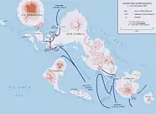 En début de 1943, certains dirigeants des pays alliés, notamment le commandant en chef de la zone du Pacifique Sud-Ouest, le général Douglas MacArthur, avaient voulu mettre l'accent sur la capture de Rabaul, mais la force japonaise là-bas et le manque d'engins de débarquement signifie qu'une telle opération n'était pas pratique en 1943. Au lieu de cela, à l'initiative de chefs d'état-major des armées, un plan baptisé Opération Cartwheel a été élaboré, qui proposait d'envelopper et couper Rabaul sans capture, par des offensives simultanées sur le territoire de Nouvelle-Guinée et au nord par les îles Salomon.