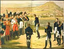 -  « Nous n'avons pas assez de troupes pour résister longtemps aux forces considérables que nous avons combattues ces jours derniers, et qui vont encore s'accroître à chaque instant ; mais aujourd'hui, Messieurs, plus que jamais, nous combattons pour l'honneur. Pensons avant tout à la ville de Paris, ne l'exposons pas à être brulée par l'artillerie ennemie; prenons une position aussi éloignée que possible, battons nous en plaine, loin des murailles, et résistons à l'ennemi aussi longtemps que nous le pourrons. » — Maréchal Mortier[6]