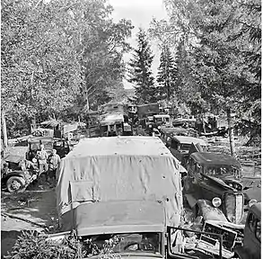 Le corps principal du IVe corps finlandais traverse la frontière au nord de Vyborg le 22 août et continue d'avancer vers la rivière Vuoksi dans les premiers jours de l'offensive. Le 24 août, la 8e division finlandaise franchit la baie de Viipuri, débarquant au sud de Vyborg et coupant la route côtière menant à la ville[10]. Dans l'espoir de rétablir la liaison routière avec Vyborg, les 43e, 115e et 123e divisions de fusiliers soviétiques lancent une contre-offensive dirigée contre la 8e division finlandaise. Bien que largement en infériorité numérique, la brigade légère T bloque les Soviétiques pendant quelques heures cruciales tandis que le IVe corps avance vers le sud le 25 août[11]. Au cours des jours suivants, les deux armées rassemblent leurs forces et se préparent à un engagement dans le terrain densément boisé autour de la ville de Porlampi, située entre les autoroutes côtières et centrales de Carélie[3].