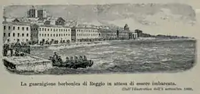 Le , Briganti, à qui Vial avait ordonné d'apporter un soutien au général Gallotti, poursuit sa marche en direction de Reggio, après avoir refusé le soutien de la batterie d'artillerie du capitaine Vincenzo Reggio. Arrivé à six heures du matin par le pont de l'Annonciation, il s'arrête et envoie deux compagnies attaquer par la mer et quatre autres par le quartier de Santa Lucia. Les garibaldiens, qui occupent déjà les liens, accueillent avec un feu nourri les troupes royales.