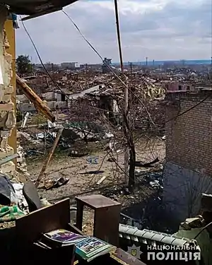 Le 2 mars, des combats ont été signalés dans presque tous les villages proches de Sievierodonetsk[6]. Les forces russes ont continué à bombarder la ville, y compris un gymnase scolaire qui servait d'abri anti-bombes. Aucun décès n'a été signalé[7]. À 15 h 20 ce jour-là, des responsables ukrainiens ont déclaré que les forces russes avaient tenté d'entrer dans la ville, mais avaient été repoussées[8]. Quatre jours plus tard, Haidai a déclaré que des combats avaient lieu à la périphérie de Lysychansk, Sievierodonetsk et Roubijné[9].
