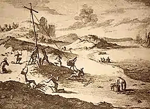 Après avoir remporté la Bataille de Diu dans l'Océan Indien, Almeida s'embarque pour le Portugal en décembre 1509 et atteint la Baie de la Table près du Cap de Bonne-Espérance, où le Garcia , Belém et Santa Cruz jettent l'ancre fin février 1510, pour faire le plein d'eau. Là, ils rencontrent la population indigène locale, le peuple Khoïkhoï [2]. Après un échange amical avec les Khoïkhoïs, un groupe de 12 ou 13 membres de l'équipage [1] visitent leur village voisin [3],[1].