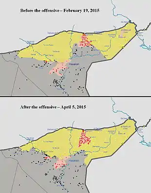 Les YPG achèvent leur offensive dans la région de Tall Hamis et de Tall Brak le et revendiquent à l'issue des combats la prise de 390 villages et de 2 940 kilomètres carrés de territoires[18],[3],[19].
