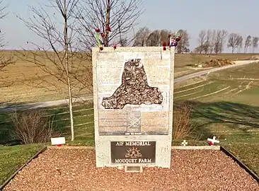- Stèle commémorative de la Ferme du Mouquet inaugurée en 1997. Elle est située face à la ferme du Mouquet