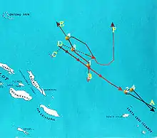 - Hara 1961, p. 132 ; Parshall. Le Chikuma fut réparé à Truk puis au Japon à Kure jusqu'en janvier 1943.