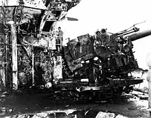 Juste 30 secondes plus tard, la bombe du “Val” suivant tomba à 4,6 m du point d'entrée de la première bombe. La détonation entraina l'explosion des munitions de l'un des canons de 127 mm à proximité, tuant 35 marins et déclenchant un grand incendie[41].