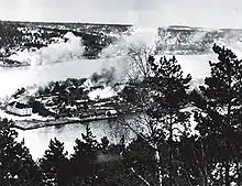 Lors de la manœuvre, la forteresse d'Oscarsborg a réussi à endommager le Lützow, les canons de 150 mm de la batterie de Kopås mettant trois coups au but, faisant tomber la tourelle arrière de 280 mm du navire (« Bruno »)[29]. Kopås continue de tirer sur les navires se retirant jusqu'à ce qu'ils disparaissent dans la brume à une distance d'environ 3 000 m [30] Après s'être mis hors de portée des canons de la forteresse, le Lützow utilise sa tourelle restante « Anton » pour bombarder les défenseurs à une distance de 9 à 10 km.