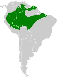 Cet oiseau se rencontre en Bolivie, au Brésil, en Colombie, en Équateur, en Guyane, au Pérou, au Suriname et au Venezuela[1].