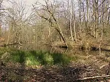 La partie arrière de la batterie était protégée par un étang artificiel, ceinturant les traverses, en forme de fer à cheval.