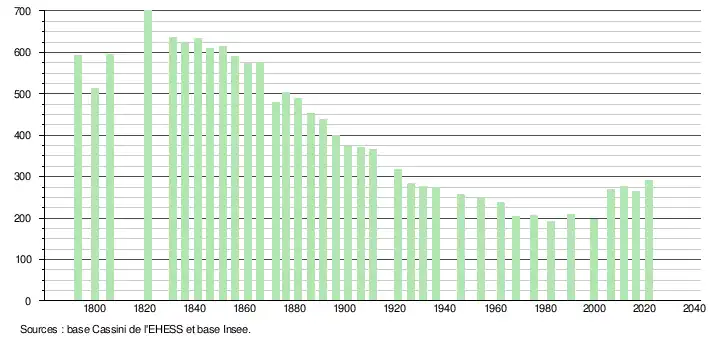 - Population municipale légale en vigueur au 1er janvier 2024, millésimée 2021, définie dans les limites territoriales en vigueur au 1er janvier 2023, date de référence statistique : 1er janvier 2021.