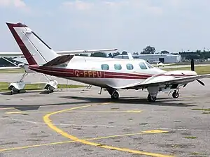 C’est début 1965 que fut lancé à Wichita le développement d’un nouveau bimoteur, alors désigné Model 60. L’objectif était de réaliser un appareil à moteurs turbocompressés, pouvant transporter entre quatre et six passagers dans les meilleures conditions de confort possible. Doté de lignes très aérodynamiques le rendant facilement reconnaissable, le prototype (c/n P-1) prit rapidement forme. Il fit son premier vol, piloté par R.S. « Bob » Hagan le 29 décembre 1966[1]. La certification FAA fut délivrée le .