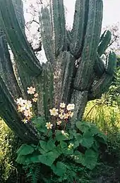 Atteignant 60 cm de hauteur, ce Bégonia aux fleurs blanches larges d'une dizaine de centimètres, à huit pétales en général et aux longues tiges rouges, pousse et fleurit durant la saison des pluies (janvier-février-mars) sur les vieux murs, sur les rochers ou au pied des cactus columnaires (Cereus). La plante disparaît totalement à la saison sèche (mai-septembre).