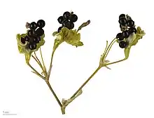 Ses fruits sont des capsules turbinées, renflées à 3 valves, déhiscente contenant les graines noires, sphériques et brillantes.