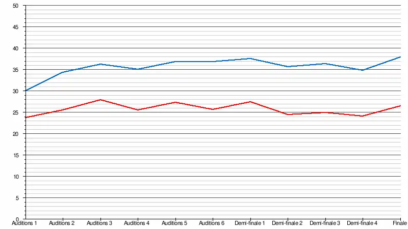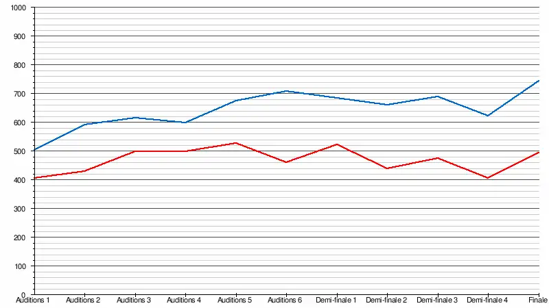 | 11 (Finale) | Lundi (20:13) | 743 500 | 37,9 % | [15] |