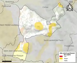 Le retrait-gonflement des sols argileux est susceptible d'engendrer des dommages importants aux bâtiments en cas d’alternance de périodes de sécheresse et de pluie. 15,7 % de la superficie communale est en aléa moyen ou fort (67,7 % au niveau départemental et 48,5 % au niveau national). Sur les 228 bâtiments dénombrés sur la commune en 2019, 58 sont en aléa moyen ou fort, soit 25 %, à comparer aux 72 % au niveau départemental et 54 % au niveau national. Une cartographie de l'exposition du territoire national au retrait gonflement des sols argileux est disponible sur le site du BRGM[23],[Carte 2].