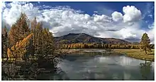 Toujours au nord se trouvent les monts Katoun, avec le mont Béloukha, les gorges de l'Argout, dite percée de Karagem[8] et la crête de la Tchouïa du sud. Le parc se situe aussi au sud du parc national de Saïliouguem.
