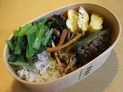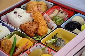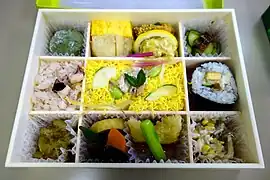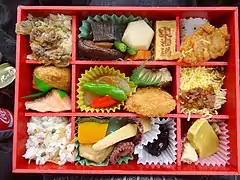 | Mets similaires | Osechi, ekiben, dosirak, kaiseki, chirashi, sushi, sashimi, takikomigohan, donburi |