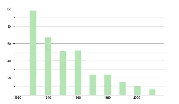 | 1940 | 67 | ▼ −31,63 % | |