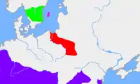 La culture de Wielbark, représentée en rouge, correspond à la Gothiscandza.