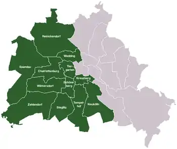 - Secteur américain : les districts de Kreuzberg, Neukölln, Tempelhof, Schöneberg, Steglitz et Zehlendorf. 983 000 habitants en [2].