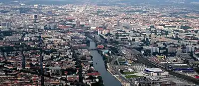 Plan du quartier en 1893 après la construction du Stadtbahn et la fermeture de la gare de l'Est. Plan du quartier en 1893 après la construction du Stadtbahn et la fermeture de la gare de l'Est.