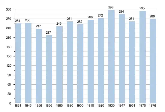 - Sources : INS, Rem. : 1831 jusqu'en 1970 = recensements, 1976 = nombre d'habitants au 31 décembre[3].
