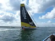 | .jpg.webp)  Bernard Stamm lors du départ du Vendée Globe 2012-2013 | |