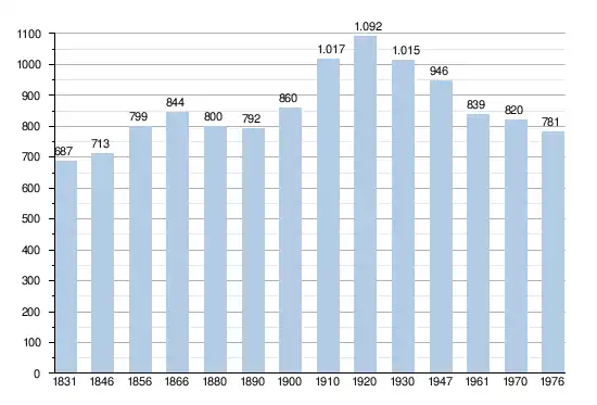 Les chiffres des années 1831 à 1970 tiennent compte des chiffres des anciennes communes fusionnées.