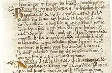 - Avranches, bibliothèque municipale, manuscrit 210, Cartulaire du Mont-Saint-Michel, folios 85v et 86
