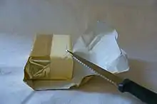 - Le beurre sec (14 % d'eau au lieu de 16), souvent utilisé comme beurre de tourage en pâtisserie, est plus dur et a un point de fusion plus élevé que le beurre gras[34]. Le beurre d'hiver est considéré comme un beurre sec, tandis que le beurre d'été est considéré comme un beurre gras. Le beurre Charentes-Poitou est également un beurre sec, tandis que les beurres de Normandie et de Bretagne sont des beurres gras.
