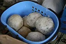 _(3).jpg.webp) Cuisson de la pâte brute et décantage final dans une calebasse. Cuisson de la pâte brute et décantage final dans une calebasse.