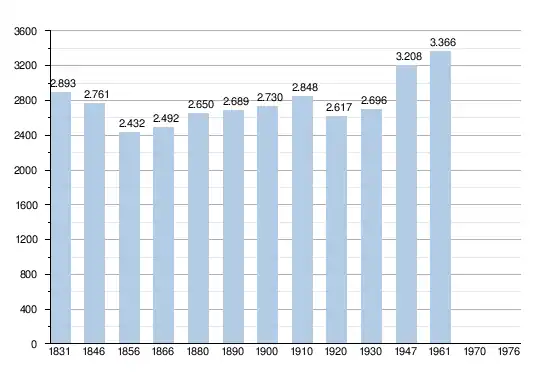 • Sources : INS, Rem. : 1831 jusqu'en 1961 = recensements[3].