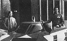 Jean-Claude Andruet et “Biche” autour du prototype Lancia Stratos Marlboro à Turin en 1973
