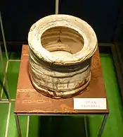 | Céramique | Seiji (青磁)[84],[63] | La couleur vert pâle du céladon est obtenue à partir d'une glaçure feldspathique et d'une réduction de la cuisson; introduit en provenance du continent | 2007 | ![]() | |
