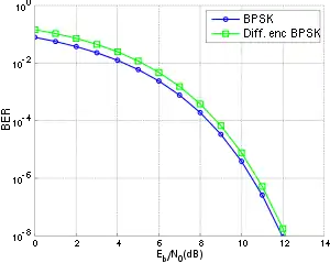 Chaque type de modulation est caractérisé par une courbe de taux d’erreur théorique en fonction du rapport Eb/N0 pour un démodulateur parfait. Par exemple une modulation BPSK à 10-8 demande un Eb/N0 de 12 dB selon la courbe ci-jointe.