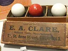 Boules de billard inventées par Raoul MAIN puis fabriquées vers 1920 par la Celluloid Manufacturing Company de John Wesley Hyatt.