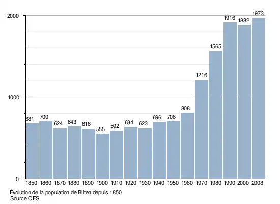 Le graphique suivant résume l'évolution de la population de Bilten entre 1850 et 2008[3] :