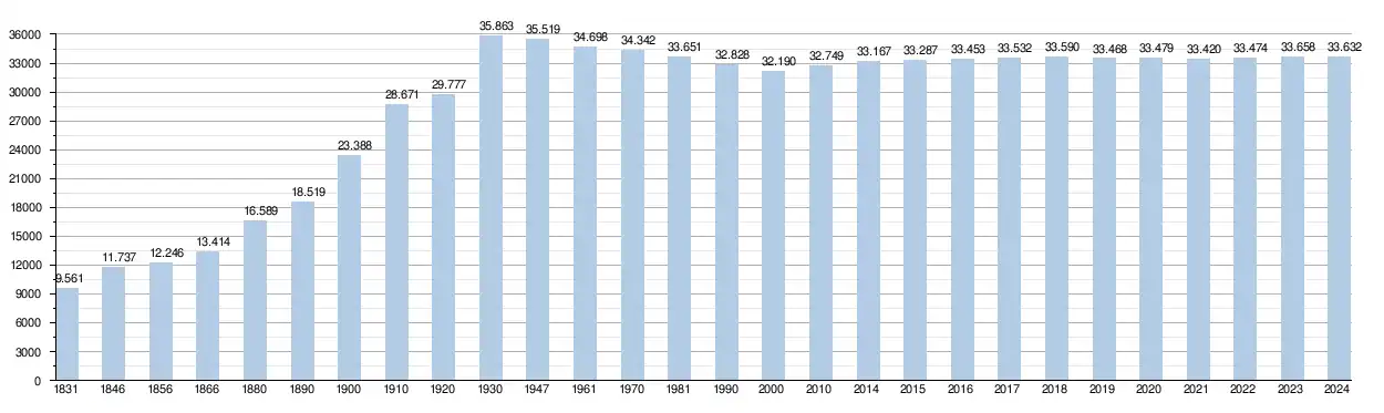 | Population – Hommes – Femmes Densité | 33 470 () 48 % 52 % 546,6 hab./km2 | ||||