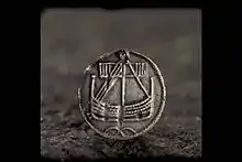 Attaches de vêtement en argent en forme de cavalier trouvé dans une tombe à chambre sous le mur de Birka.