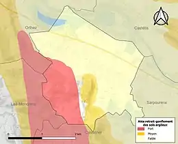 Le retrait-gonflement des sols argileux est susceptible d'engendrer des dommages importants aux bâtiments en cas d’alternance de périodes de sécheresse et de pluie[36]. 28,7 % de la superficie communale est en aléa moyen ou fort (59 % au niveau départemental et 48,5 % au niveau national)[Carte 5]. Depuis le , en application de la loi ELAN, différentes contraintes s'imposent aux vendeurs, maîtres d'ouvrages ou constructeurs de biens situés dans une zone classée en aléa moyen ou fort[Note 9],[37].