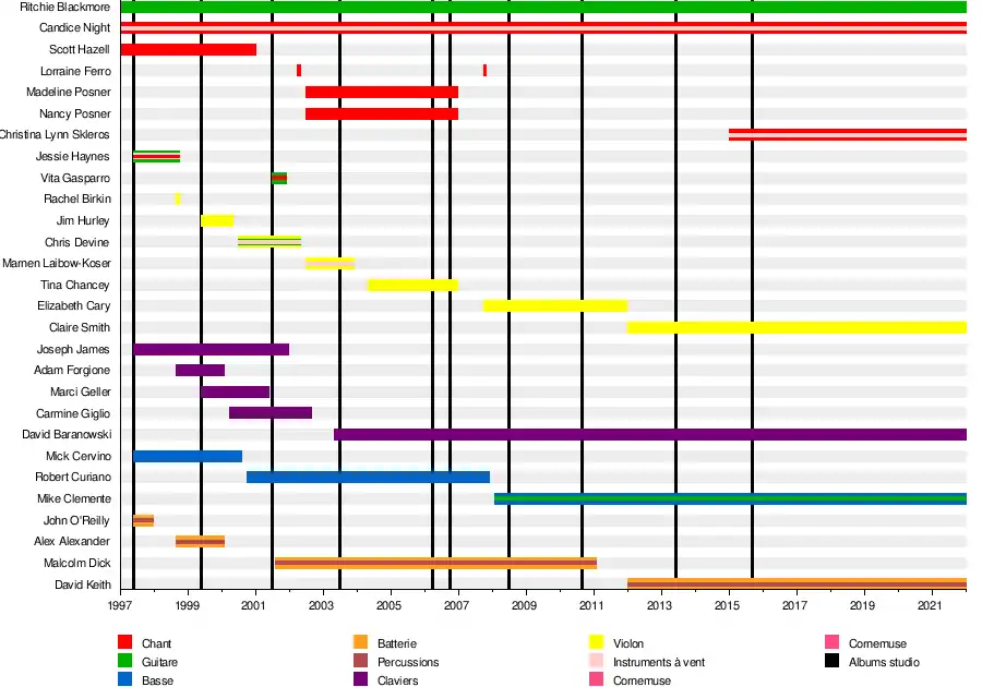 - Ritchie Blackmore : guitare électrique, guitare acoustique, mandoline, domra, vielle à roue, mandole, nykelharpa, mandoloncelle, tambourin, tambour Renaissance, fiddle