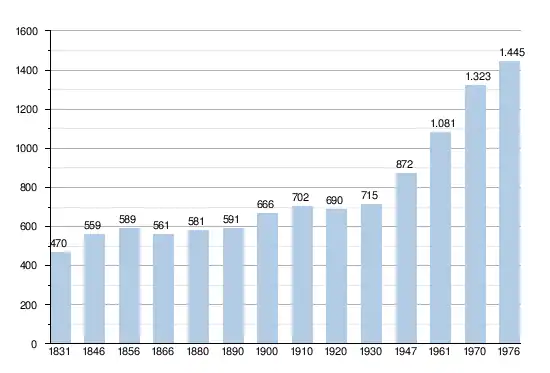 - Sources : INS, Rem. : 1831 jusqu'en 1970 = recensements, 1976 = nombre d'habitants au 31 décembre.