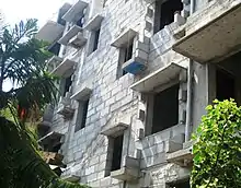 Un bâtiment construit avec des blocs de maçonnerie en béton.