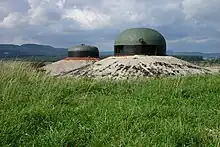 Dessus du bloc 7 de l'ouvrage du Hackenberg, montrant ses deux cloches GFM et sa tourelle de mitrailleuses.