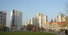 Il est célèbre pour ses rangées de bâtiments résidentiels en béton gris. On y trouve en particulier les blocs 45 et 70 qui regroupent 45 gratte-ciel identiques le long de la Save et 80 immeubles identiques près de la rue Jurija Gagarina.